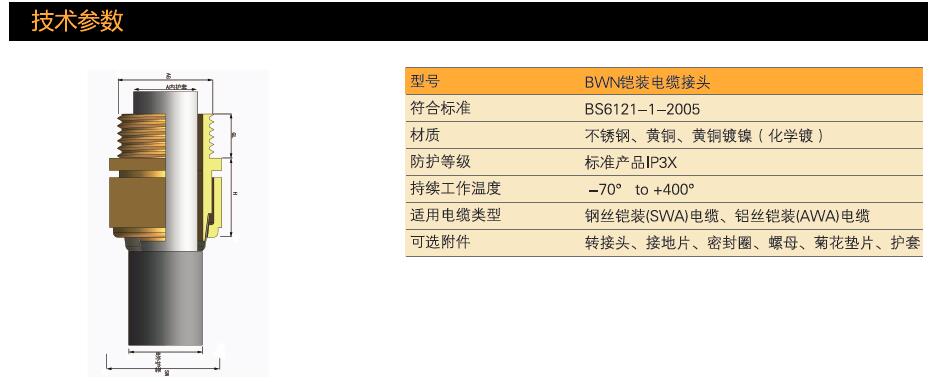 BW防爆鎧裝電纜密封接頭銅質戶內密封接頭適用于各種型號的SWA電纜,通過鎧裝電線來保持電纜的機械維系性和電力傳輸的延續性。